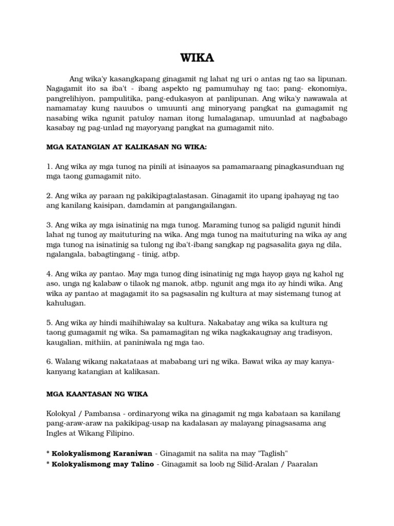 Katulad ng language - tawag sa wika sa Ingles - nagmula ang salitang lengguwahe sa salitang lingua ng Latin na nangangahulugang dila sapagkat nagagamit ang dila sa paglikha ng maraming kombinasyon ng mga tunog samakatuwid ang wika. 23193771 Wika Kahulugan Ng Wika Wika Kasaysayan At Patunguhan Szhayne S Blog Engotzz Wika Wikipedia Ang Malayang Ensiklopedya Wika. 1772014 Kolokyalpambansa - ordinaryong wika na ginagamit ng mga kabataan sa kanilang pang-araw-araw na pakikipag-usap na kadalasang malayang pinagsasama ang mga wikang Ingles at Filipino 2.