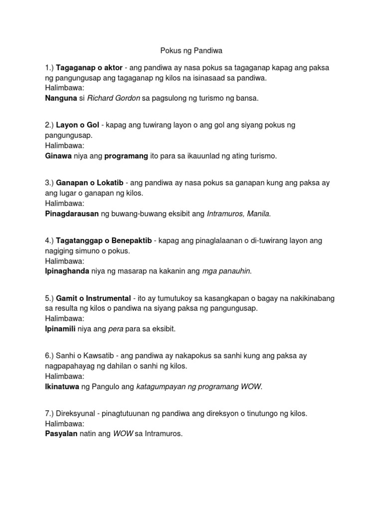 May pitong pokus ang pandiwa. Umalis si Stanley hindi para sa sarili niya kung hindi ay para sa kinabukasan ng asawa niya at ng apat. Uncategorized 30 halimbawa ng pandiwa sa pangungusap.